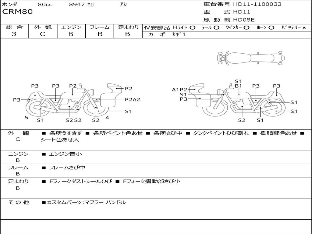 | Номер рамы / VIN | HD11-1100033 |
