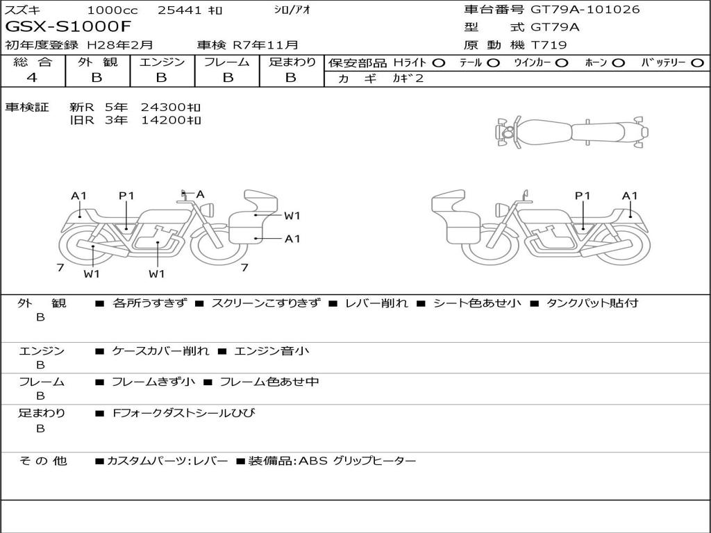| Номер рамы / VIN | GT79A-101026 |