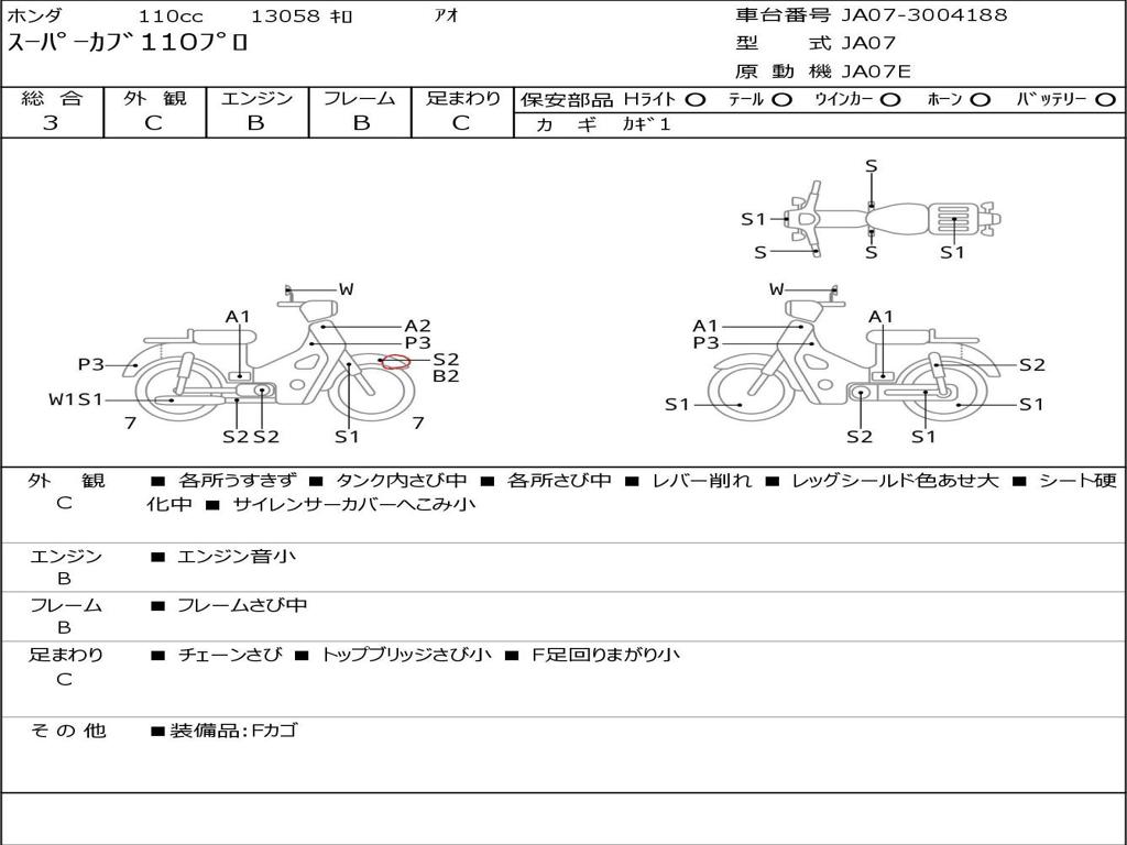 | Номер рамы / VIN | JA07-3004188 |