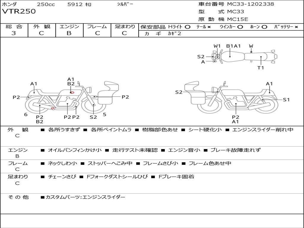 | Номер рамы / VIN | MC33-1202338 |