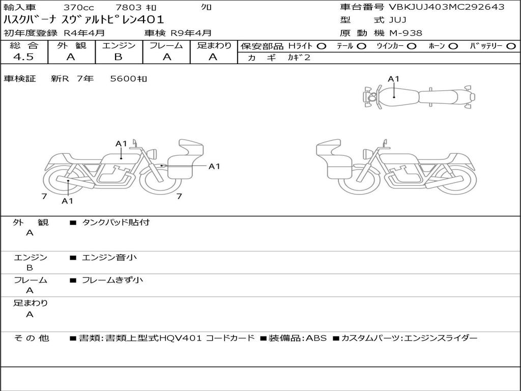 | Номер рамы / VIN | VBKJUJ403MC292643 |