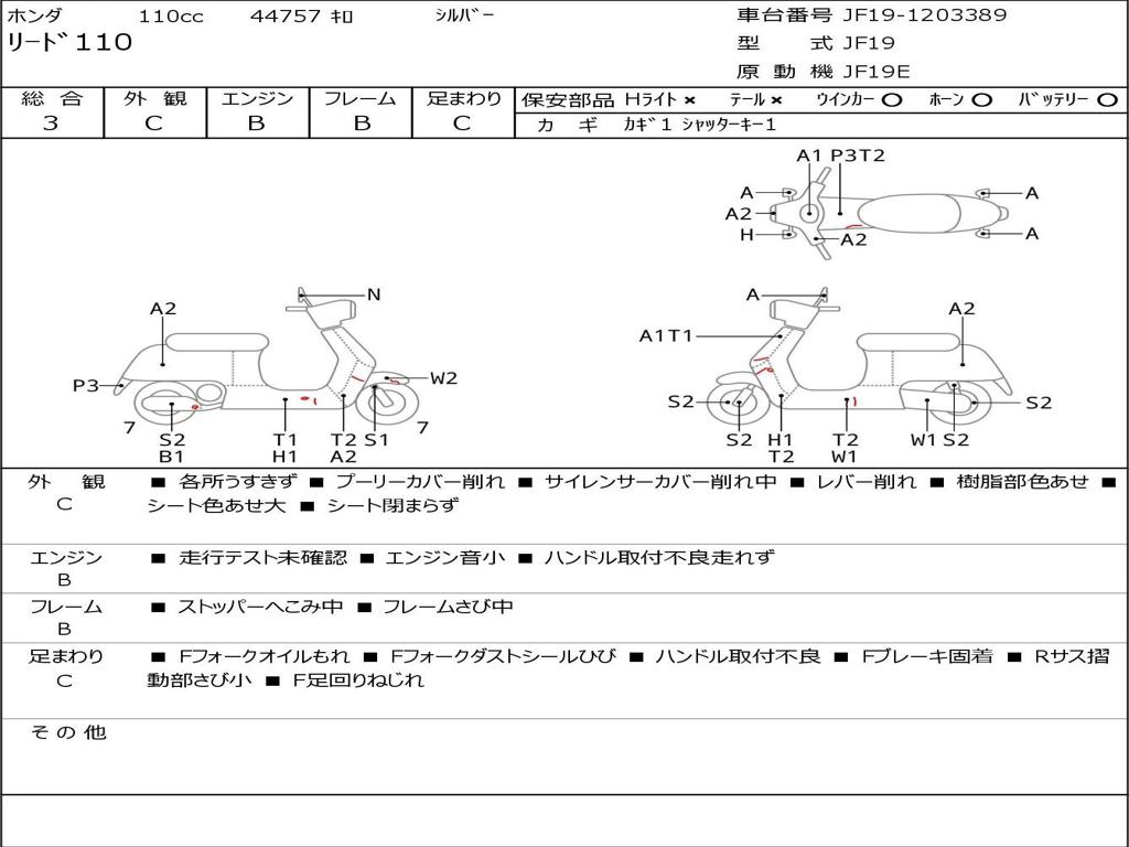 | Номер рамы / VIN | JF19-1203389 |