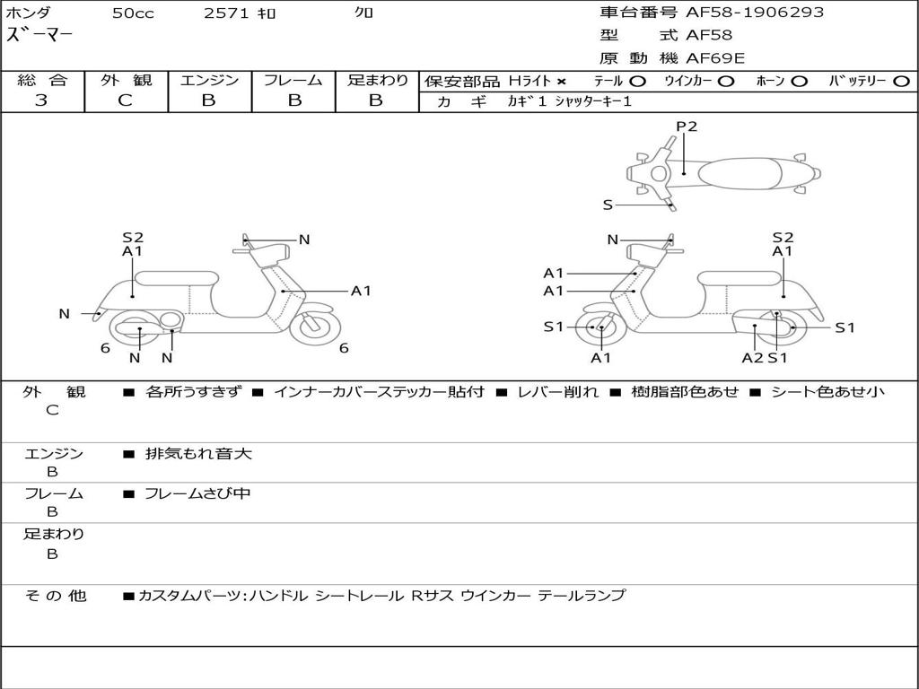 | Номер рамы / VIN | AF58-1906293 |