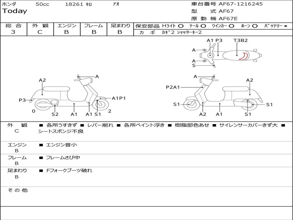 | Номер рамы / VIN | AF67-1216245 |
