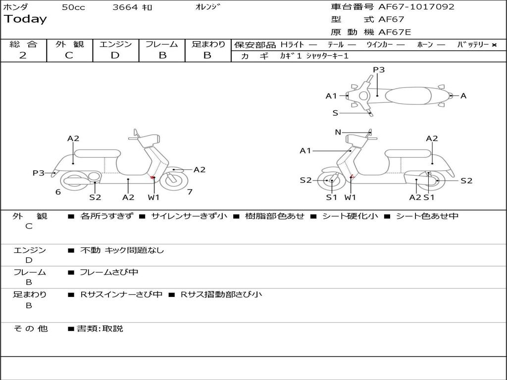 | Номер рамы / VIN | AF67-1017092 |
