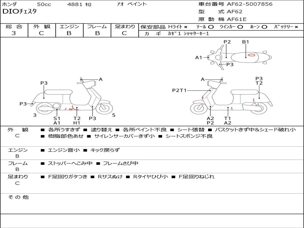 | Номер рамы / VIN | AF62-5007856 |