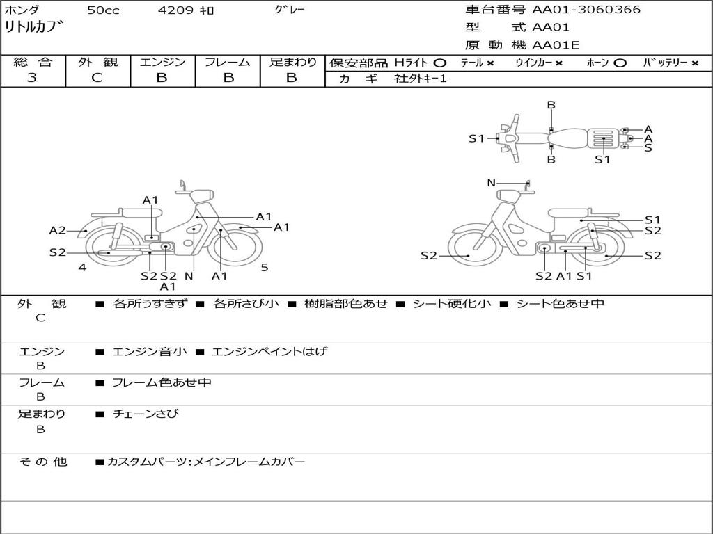| Номер рамы / VIN | AA01-3060366 |