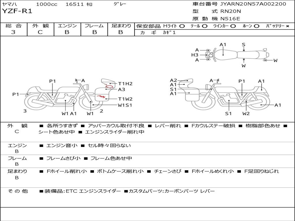| Номер рамы / VIN | JYARN20N57A002200 |