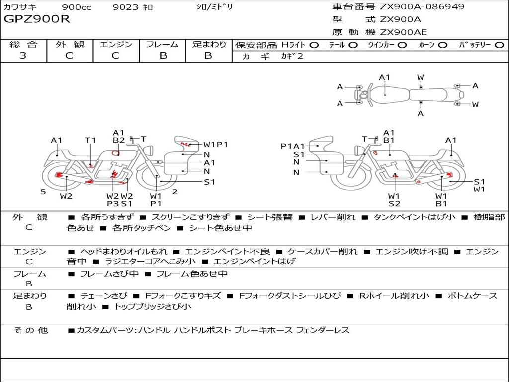 | Номер рамы / VIN | ZX900A-086949 |