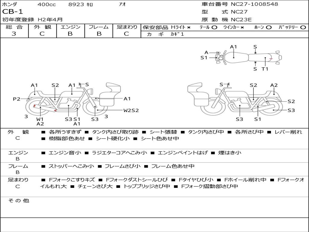 | Номер рамы / VIN | NC27-1008548 |