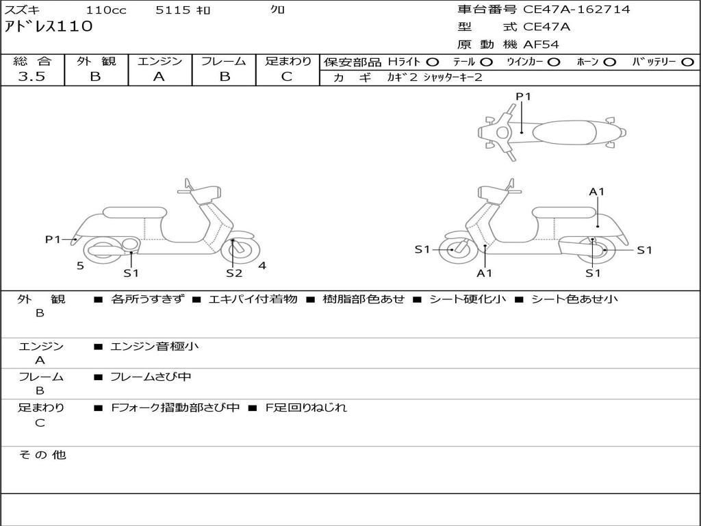 | Номер рамы / VIN | CE47A-162714 |