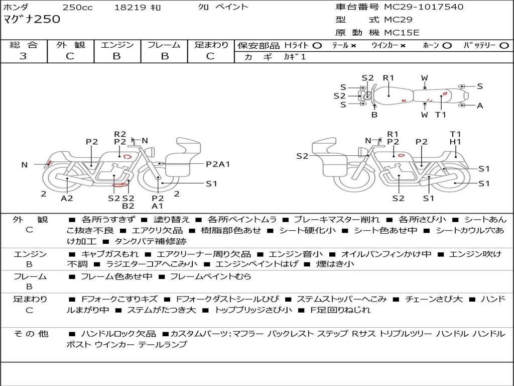 | Номер рамы / VIN | MC29-1017540 |