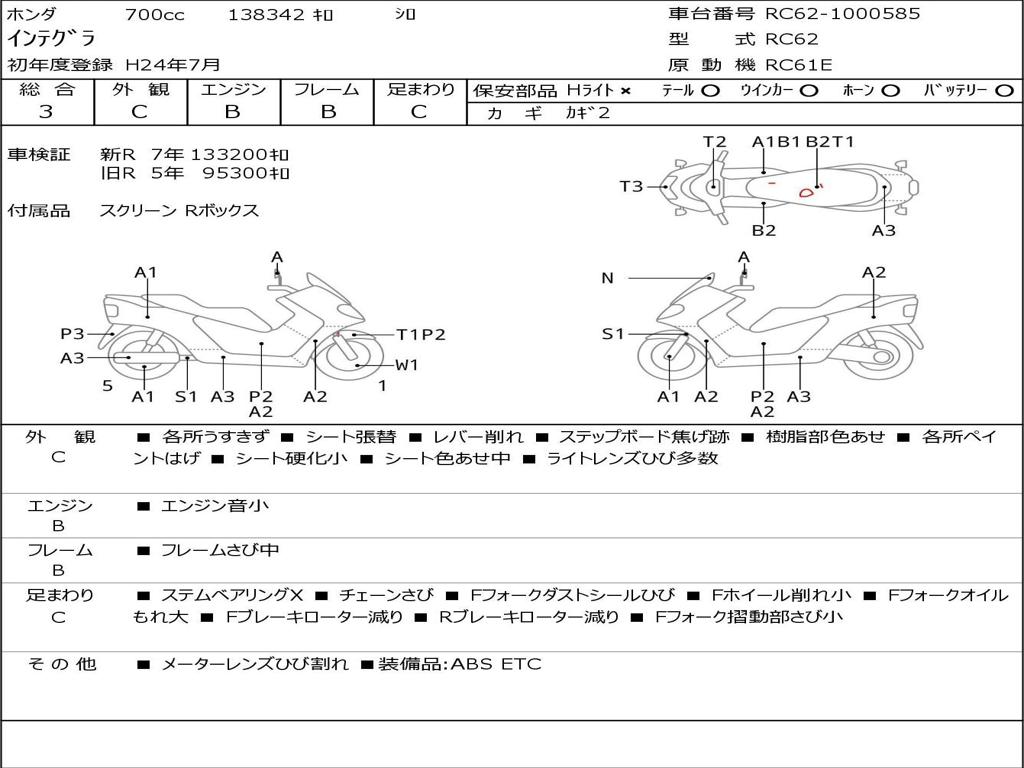 | Номер рамы / VIN | RC62-1000585 |