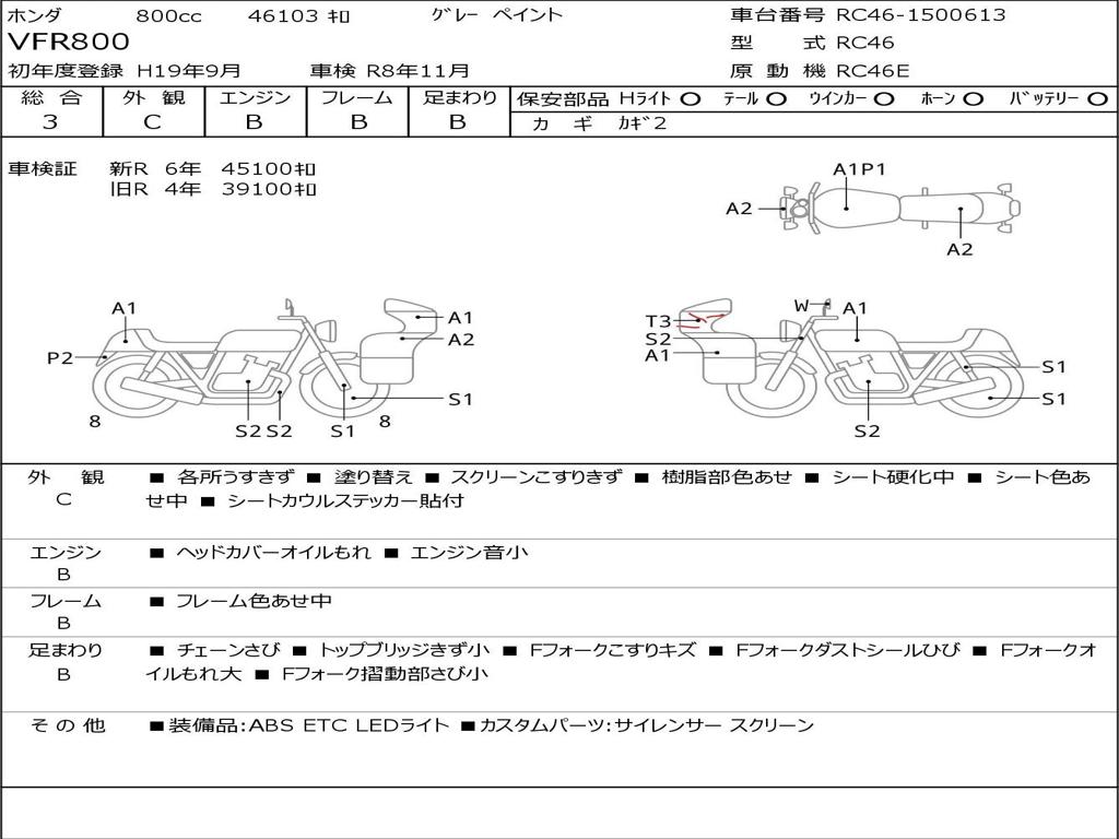 | Номер рамы / VIN | RC46-1500613 |