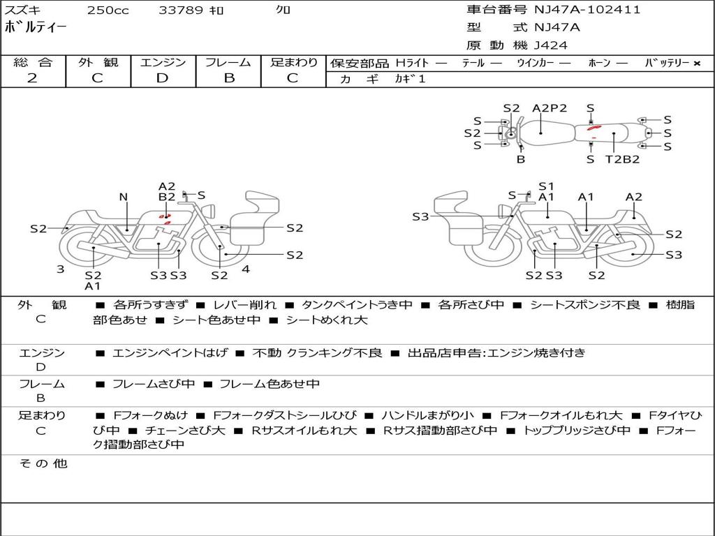 | Номер рамы / VIN | NJ47A-102411 |