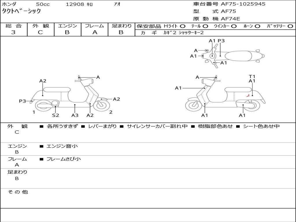 | Номер рамы / VIN | AF75-1025945 |