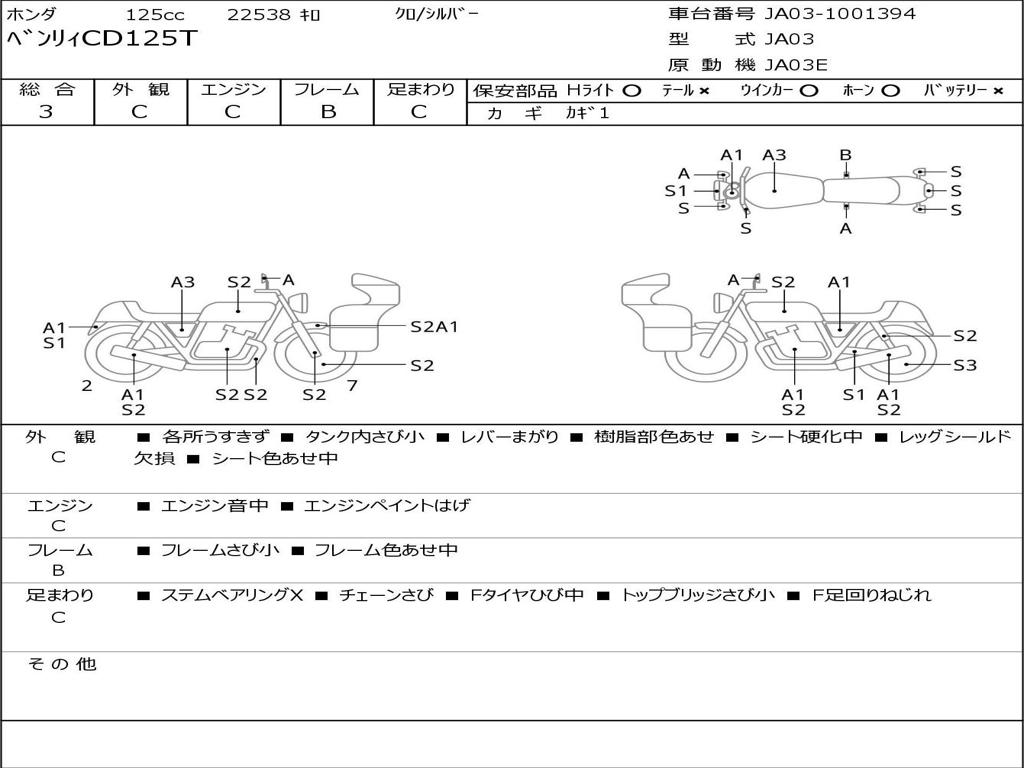 | Номер рамы / VIN | JA03-1001394 |