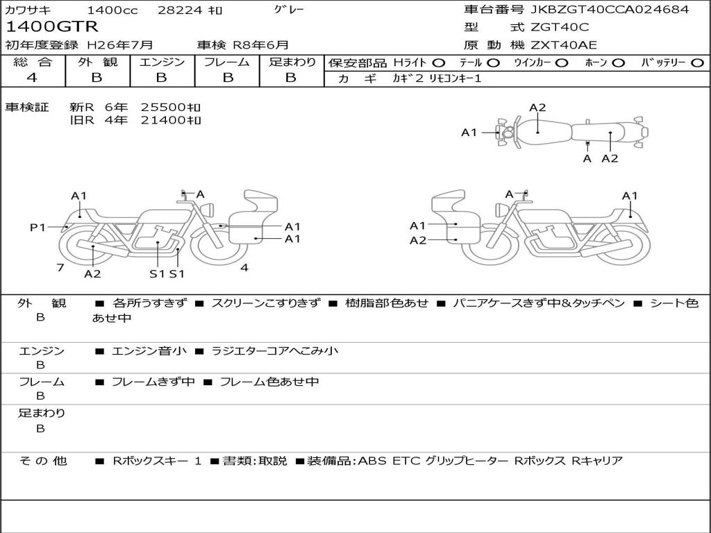 | Номер рамы / VIN | JKBZGT40CCA024684 |