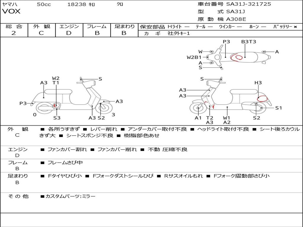 | Номер рамы / VIN | SA31J-321725 |