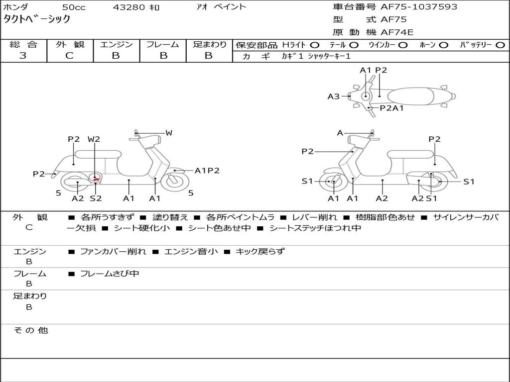 | Номер рамы / VIN | AF75-1037593 |