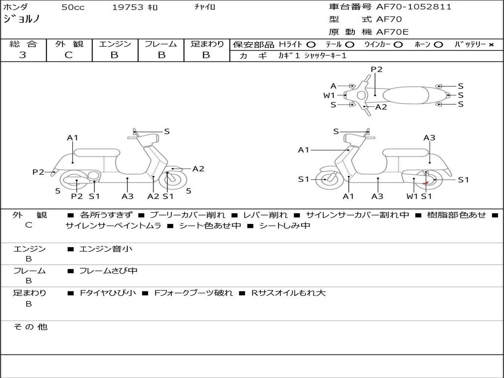 | Номер рамы / VIN | AF70-1052811 |