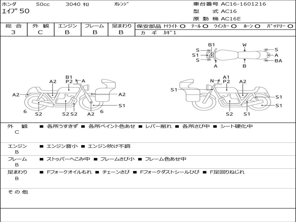 | Номер рамы / VIN | AC16-1601216 |