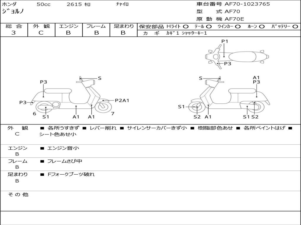 | Номер рамы / VIN | AF70-1023765 |