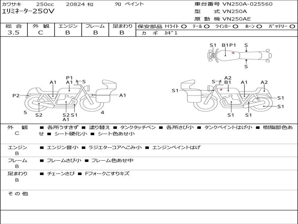 | Номер рамы / VIN | VN250A-025560 |