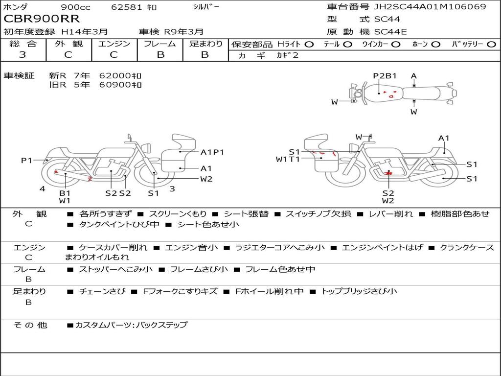 Номер рамы / VIN | JH2SC44A01M106069 |
