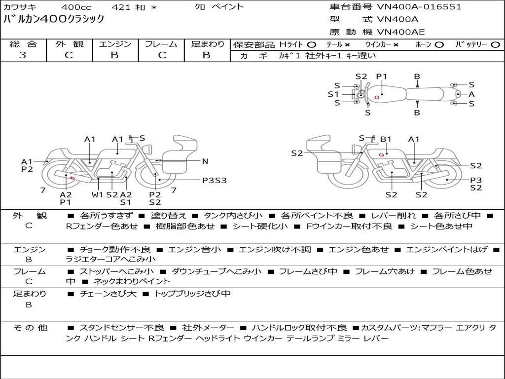 | Номер рамы / VIN | VN400A-016551 |