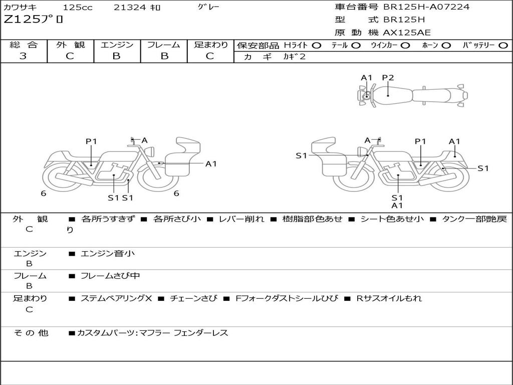 | Номер рамы / VIN | BR125H-A07224 |