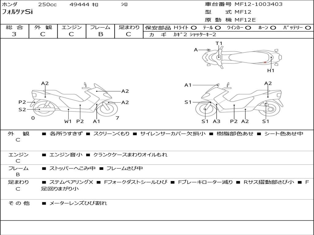 | Номер рамы / VIN | MF12-1003403 |