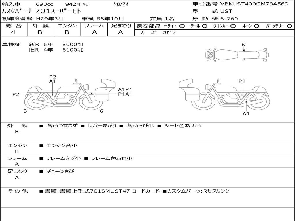 | Номер рамы / VIN | VBKUST400GM794569 |