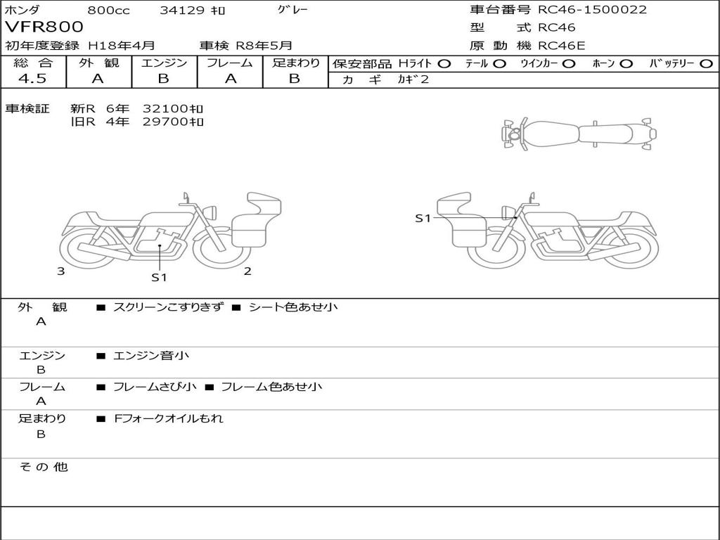| Номер рамы / VIN | RC46-1500022 |
