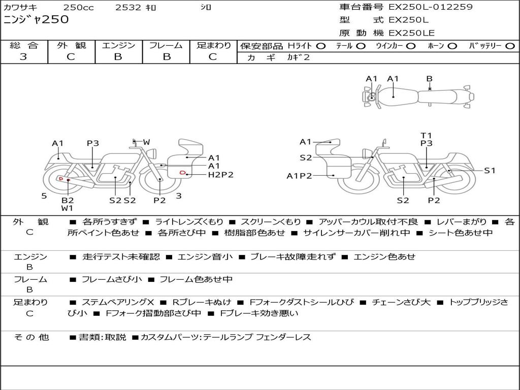 | Номер рамы / VIN | EX250L-012259 |