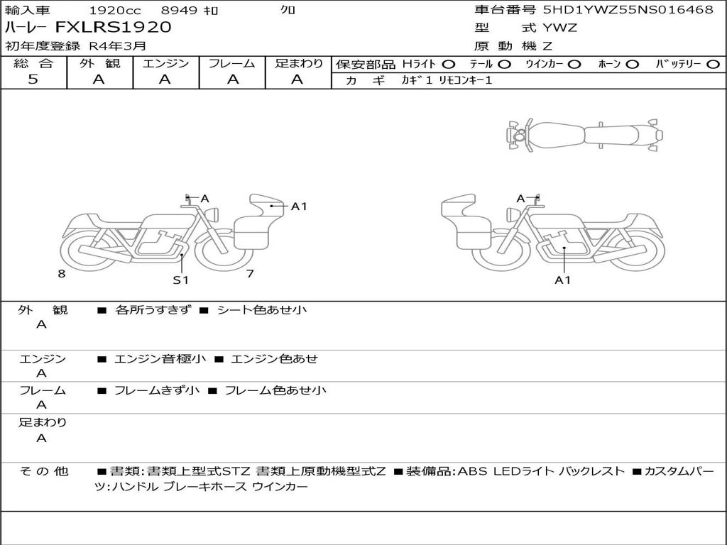 | Номер рамы / VIN | 5HD1YWZ55NS016468 |