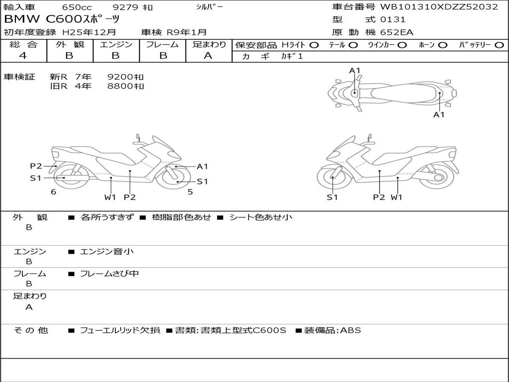 | Номер рамы / VIN | WB101310XDZZ52032 |