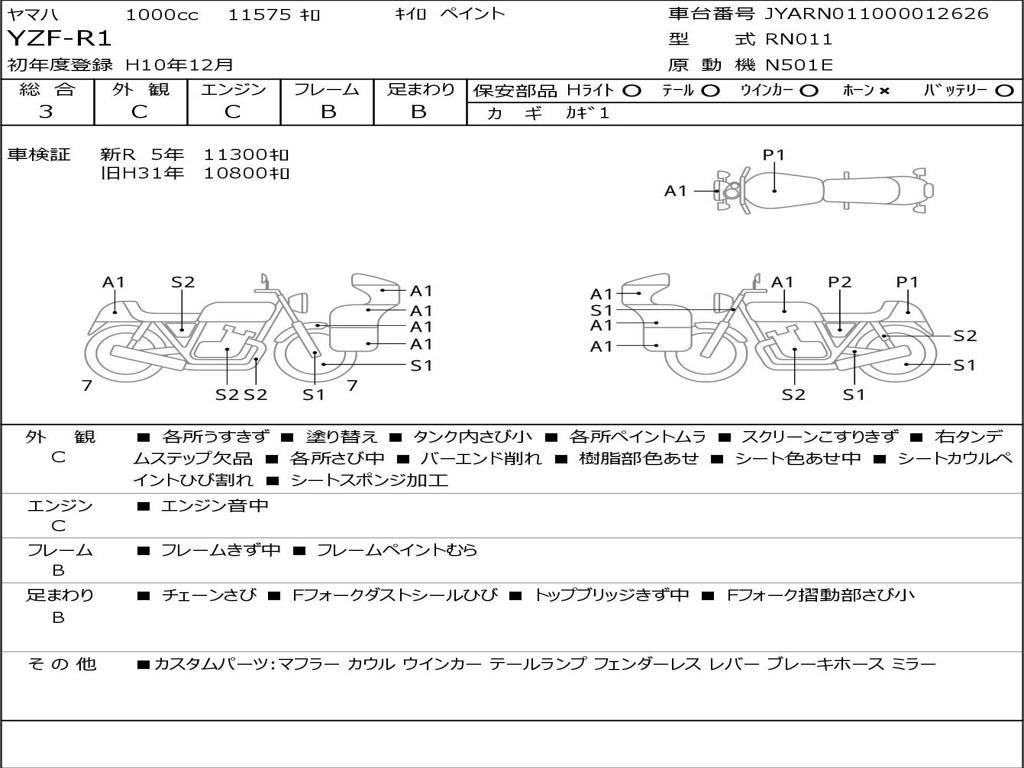 | Номер рамы / VIN | JYARN011000012626 |