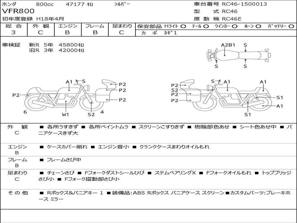 | Номер рамы / VIN | RC46-1500013 |