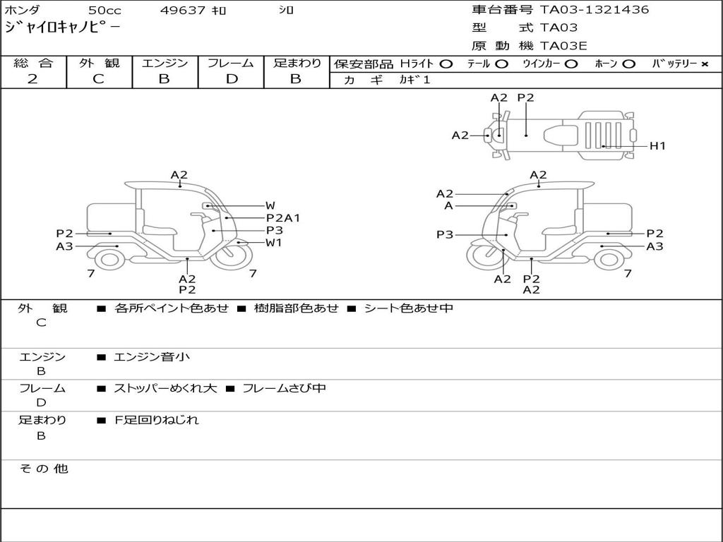 | Номер рамы / VIN | TA03-1321436 |