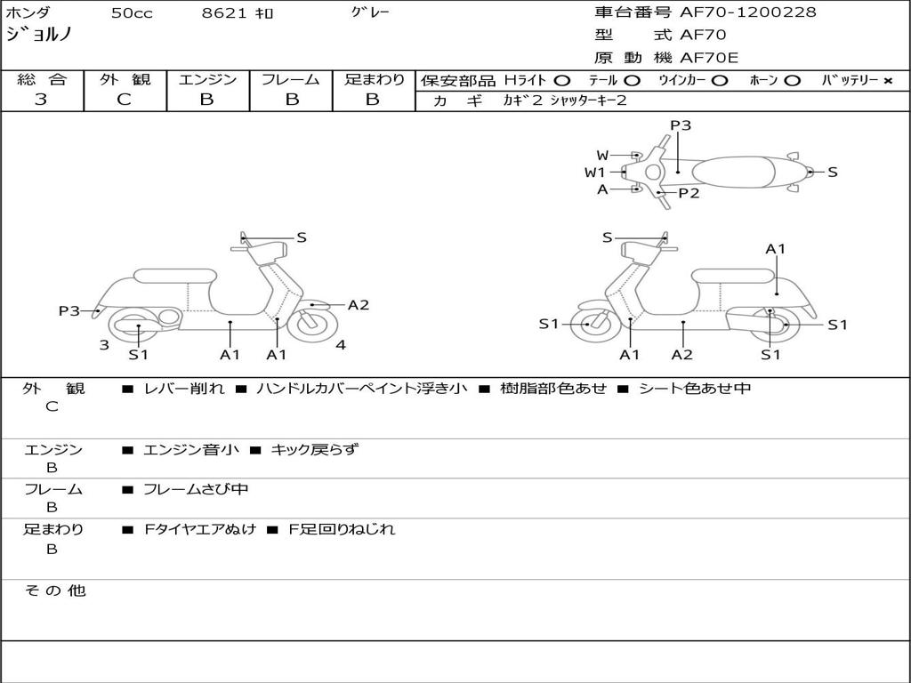 | Номер рамы / VIN | AF70-1200228 |