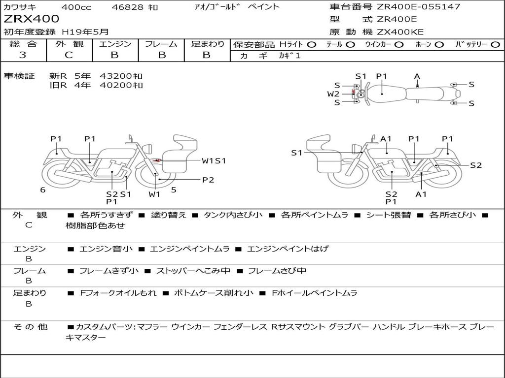 | Номер рамы / VIN | ZR400E-055147 |