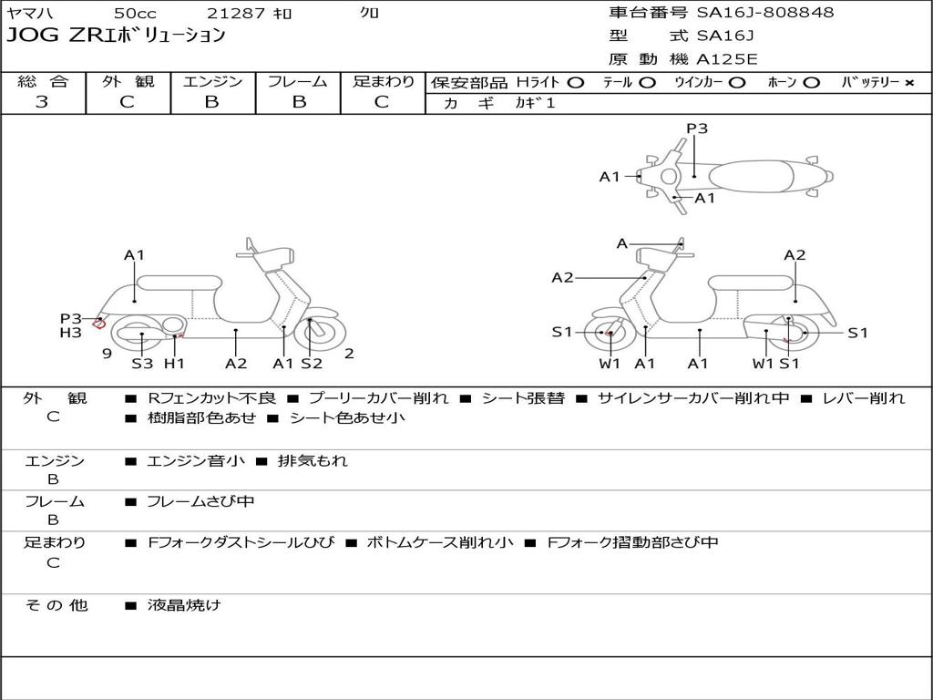 | Номер рамы / VIN | SA16J-808848 |
