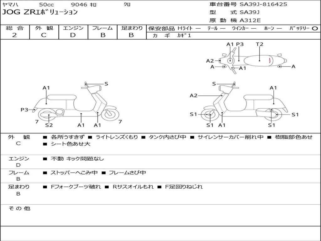 | Номер рамы / VIN | SA39J-816425 |
