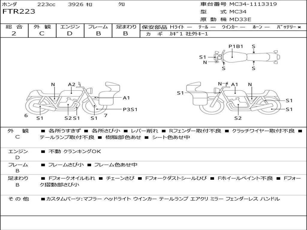 | Номер рамы / VIN | MC34-1113319 |