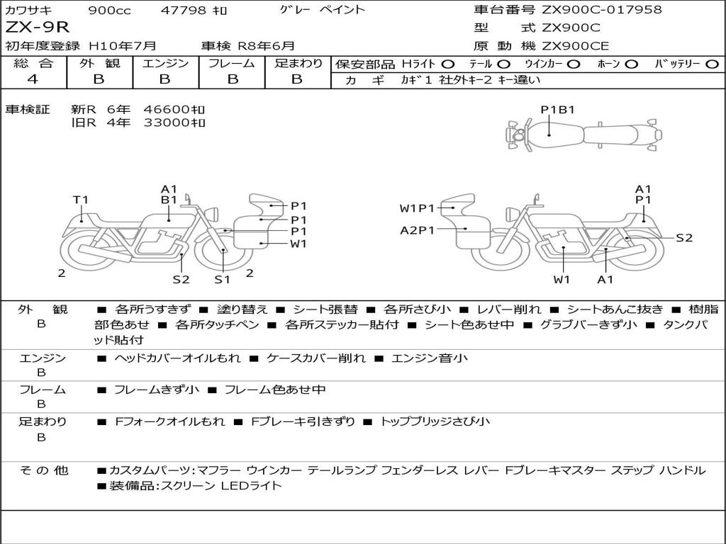 | Номер рамы / VIN | ZX900C-017958 |