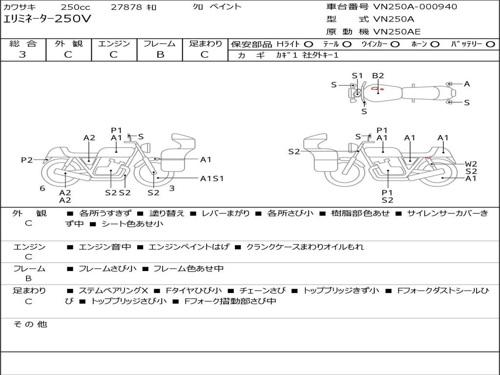 | Номер рамы / VIN | VN250A-000940 |