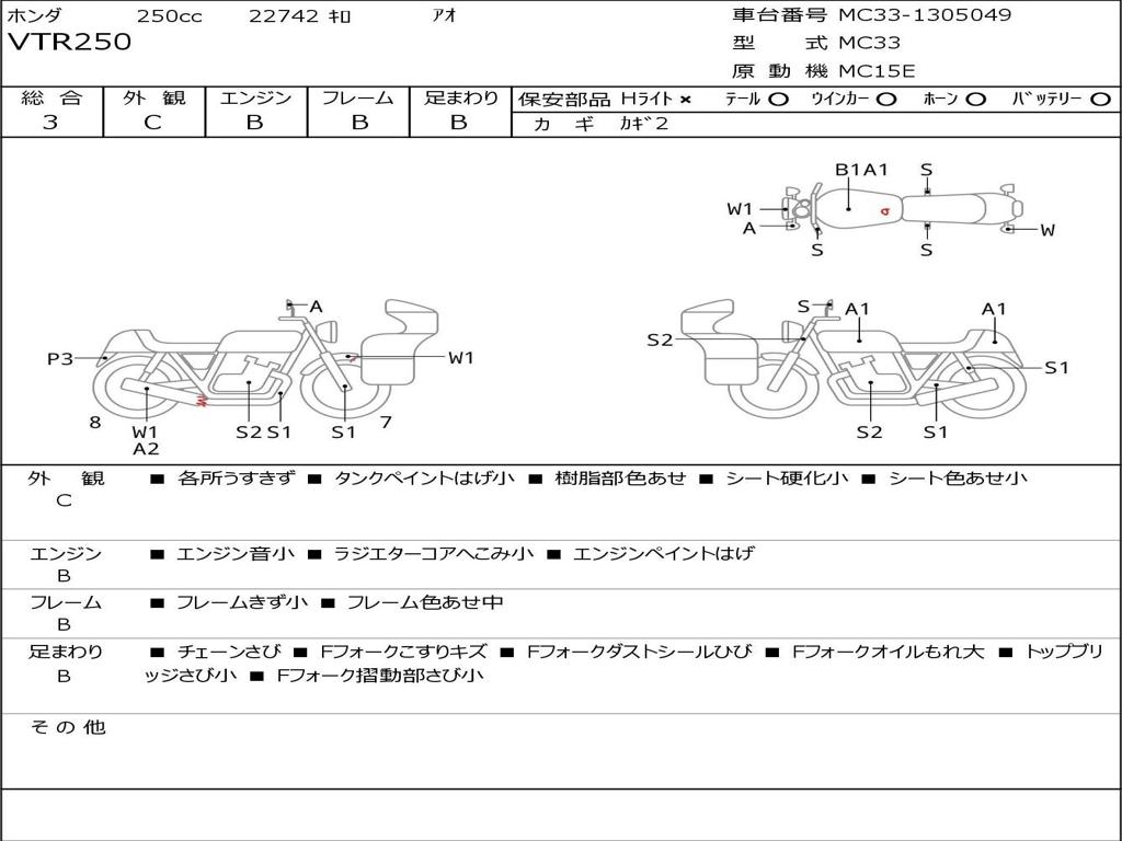 | Номер рамы / VIN | MC33-1305049 |