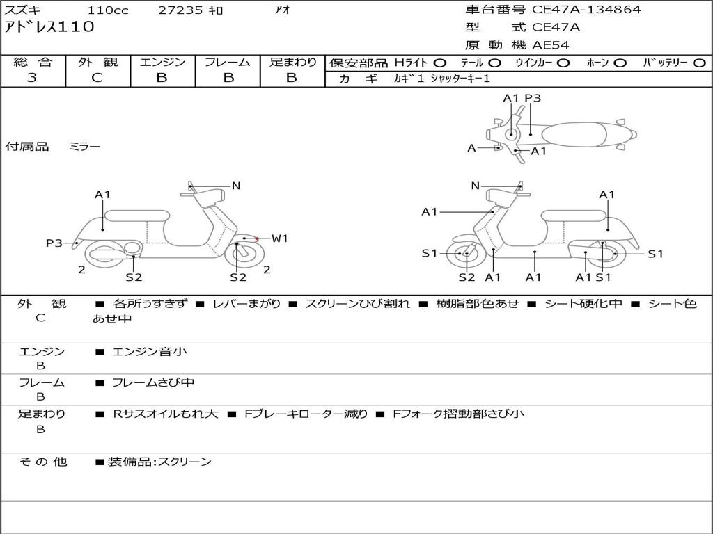 | Номер рамы / VIN | CE47A-134864 |