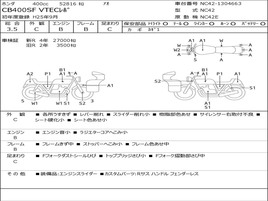 | Номер рамы / VIN | NC42-1304663 |
